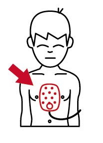Enkel utvikbar plansch att använda vid utbildning i handhavandet av hjärtstartaren på barn/spädbarn. |