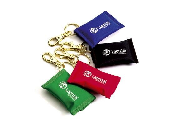 Enkelt munskydd med nyckelring som kan fästas på väska etc. |