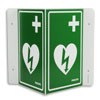 Grön laminerad skylt att montera på väggen vid hjärtstartaren. |